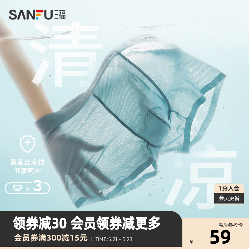 【产品名称:三福 男无痕透气内裤3条装 简约无感桑蚕丝底裆平角裤男466514】