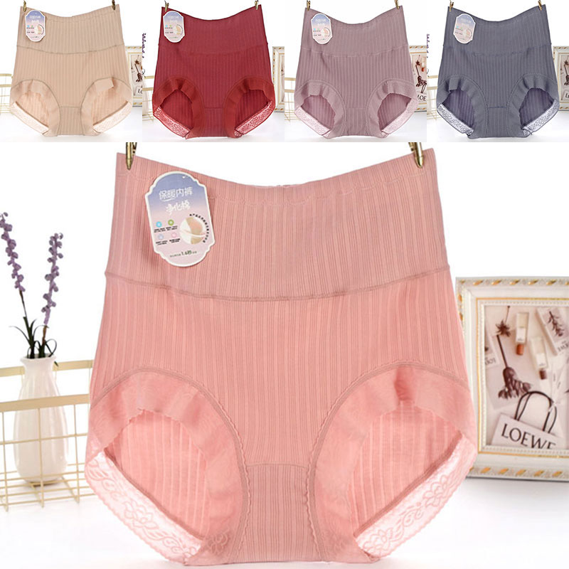【产品名称:4条礼盒装女士内裤性感蕾丝无痕纯棉莫代尔中高腰收腹大码胖m夏薄】