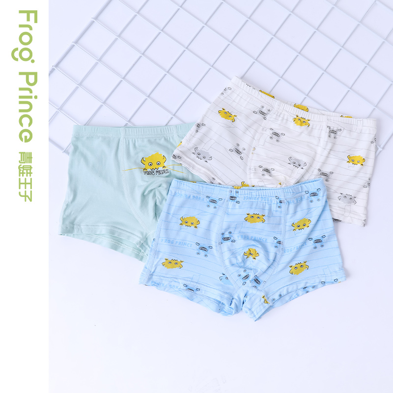 【产品名称:青蛙王子儿童内裤男童四角平角不夹PP短裤卡通萌趣棉(三条装)】