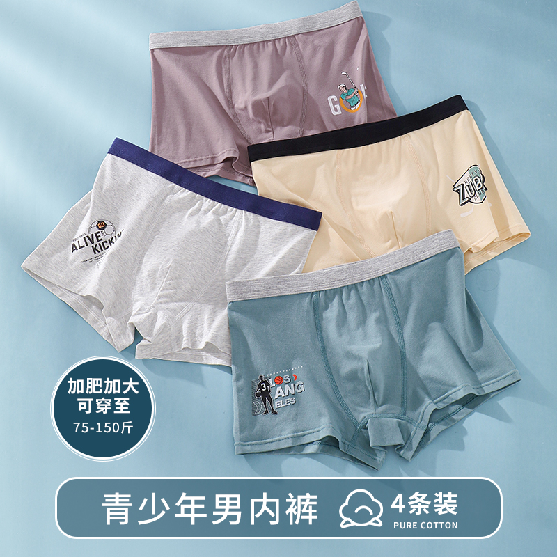 【产品名称:儿童内裤纯棉男士大童男孩青少年全棉四角短裤大码男平角100%好货】