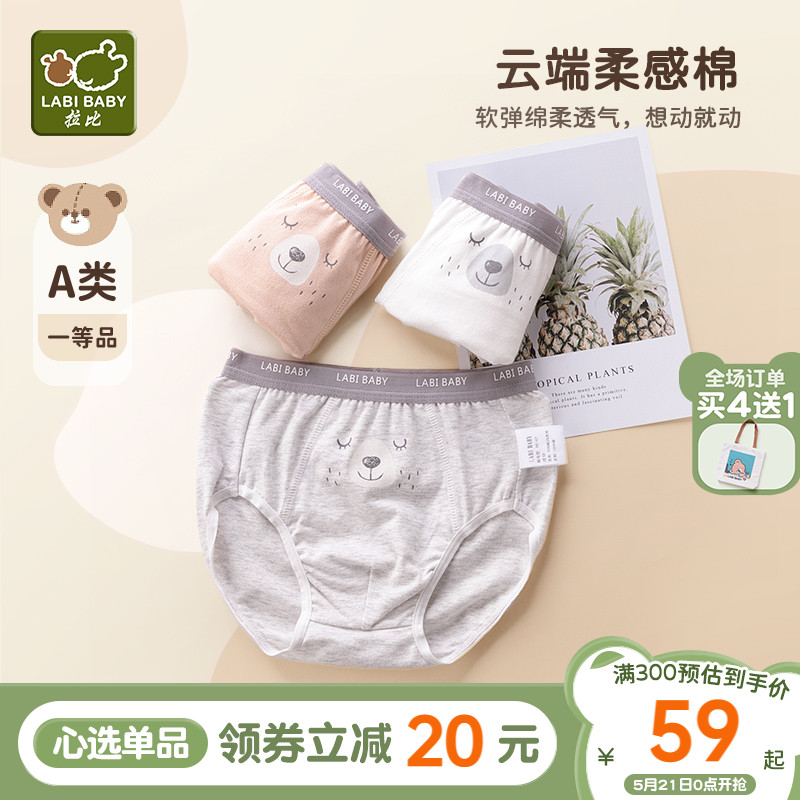 【产品名称:拉比儿童内裤男宝宝1-3-5岁纯棉男童三角裤中小童婴儿内裤3条装】