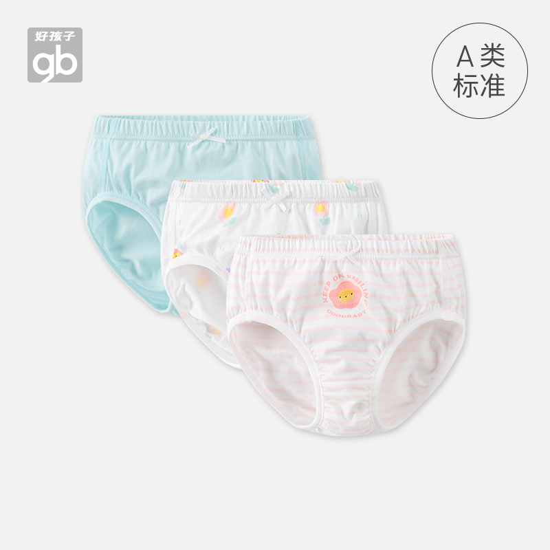 【产品名称:好孩子女童内裤宝宝1-3-9岁裆部纯棉儿童三角裤小女孩抗菌短裤头】