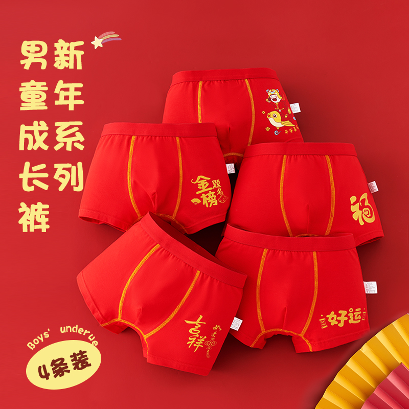 【产品名称:儿童红色内裤男童本命年纯棉短裤中大童12男孩13岁兔年虎年平角裤】