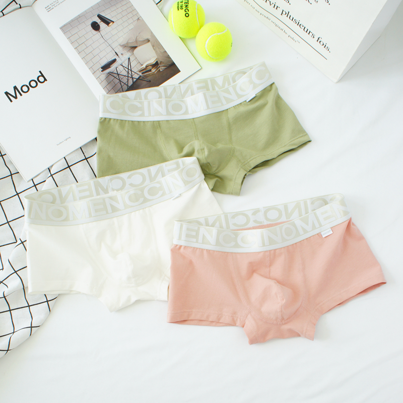 【产品名称:2条装男士内裤平角裤纯棉低腰性感舒适U凸织花简约青年四角裤包邮】