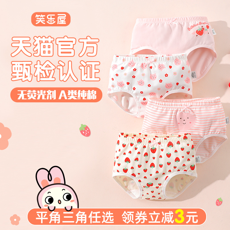 女童纯棉内裤三角短裤儿童女宝小女孩100%女宝宝大童全棉不夹屁股