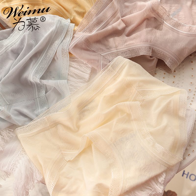 【产品名称:凉感冰丝内裤女士纯棉裆抗菌薄款舒适透气少女生全棉蕾丝无痕短裤】