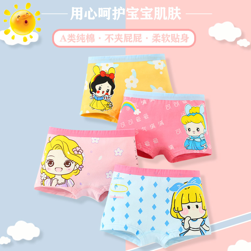 【产品名称:儿童内裤女童纯棉平角短裤四角裤宝宝小女孩全棉大童100%不夹屁屁】