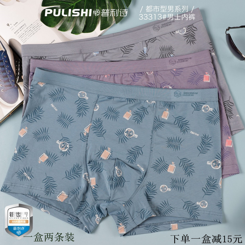 【产品名称:两条装普利诗内裤男士莫代尔棉印花抗菌裆青年中腰平角短裤 33313】
