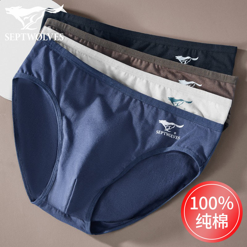 【产品名称:七匹狼男士内裤男生纯棉夏季透气薄款短裤衩大码全棉男式三角裤头】