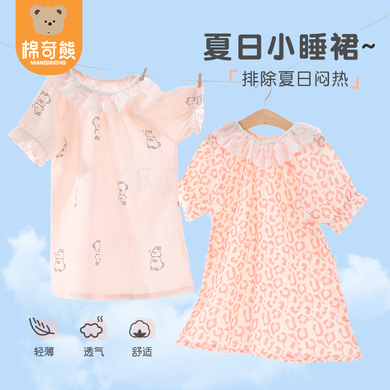 【产品名称:女童睡裙纯棉儿童夏季新款家居服女孩公主裙宝宝甜美可爱短袖睡裙】