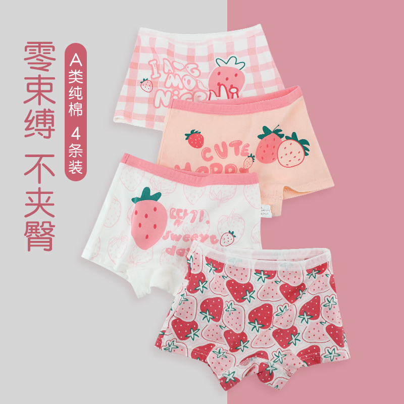 【产品名称:女童内裤纯棉平角裤女孩四角裤全棉儿童三角裤宝宝不夹屁屁短裤头】