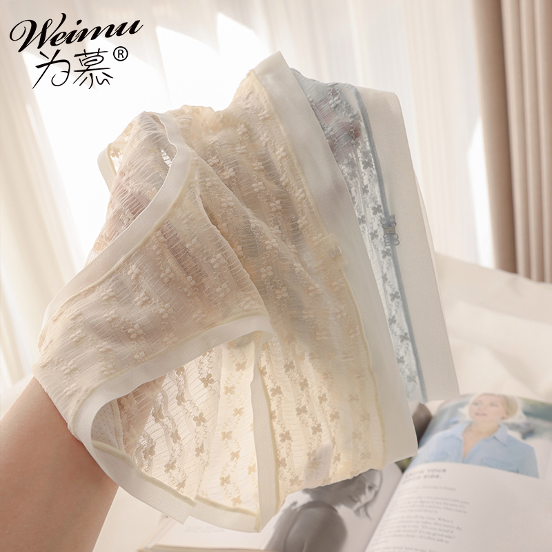 【产品名称:纯欲风蕾丝内裤女薄款网纱透气少女性感花朵刺绣无痕女士三角裤头】