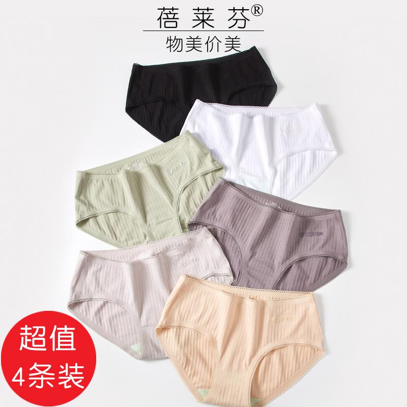 【产品名称:4条装 内裤女纯棉中腰全棉裆女士性感无痕三角裤少女日系底裤】
