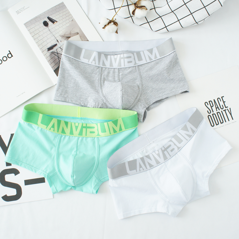 【产品名称:3条装男士内裤平角裤纯棉青年低腰纯色性感U凸舒适简约四角短裤头】