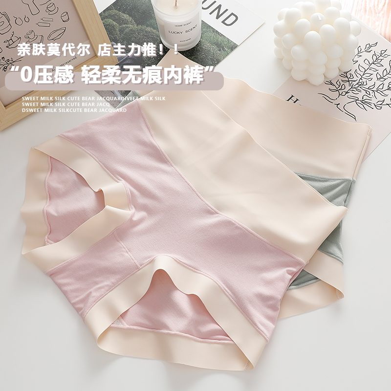 【产品名称:无痕内裤女提臀三脚裤女士高腰柔软透气抗菌底裆简约少女莫代尔棉】
