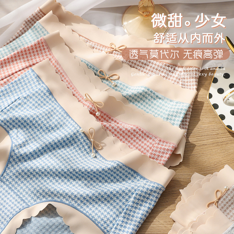 【产品名称:无痕内裤女纯棉抗菌裆薄款中腰少女日系可爱透气全棉女士三角短裤】
