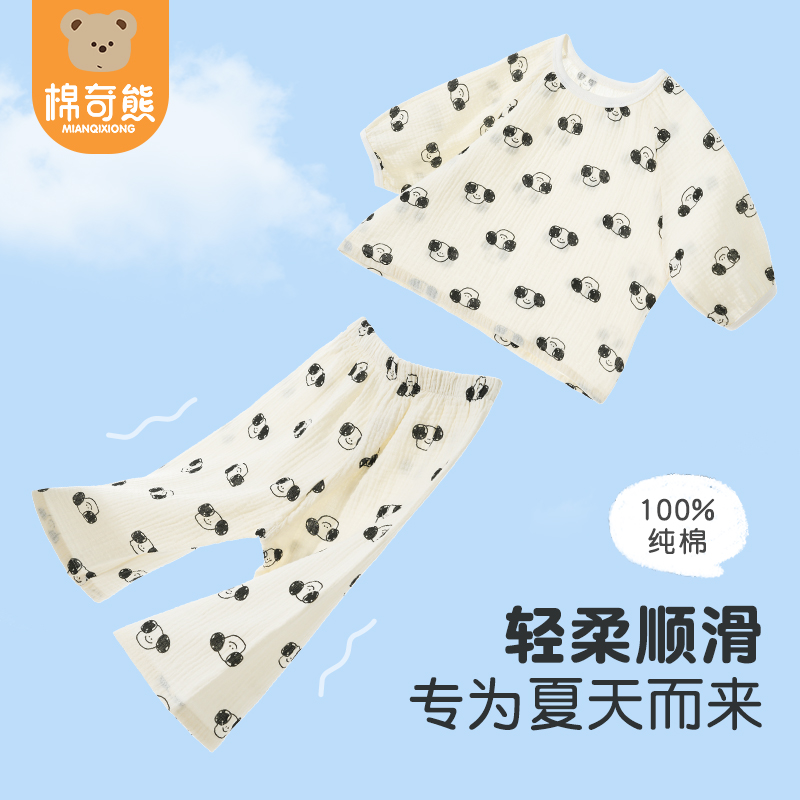 【产品名称:儿童居家服夏季纯棉男孩女孩可外穿薄款睡衣男童女童透气短袖套装】